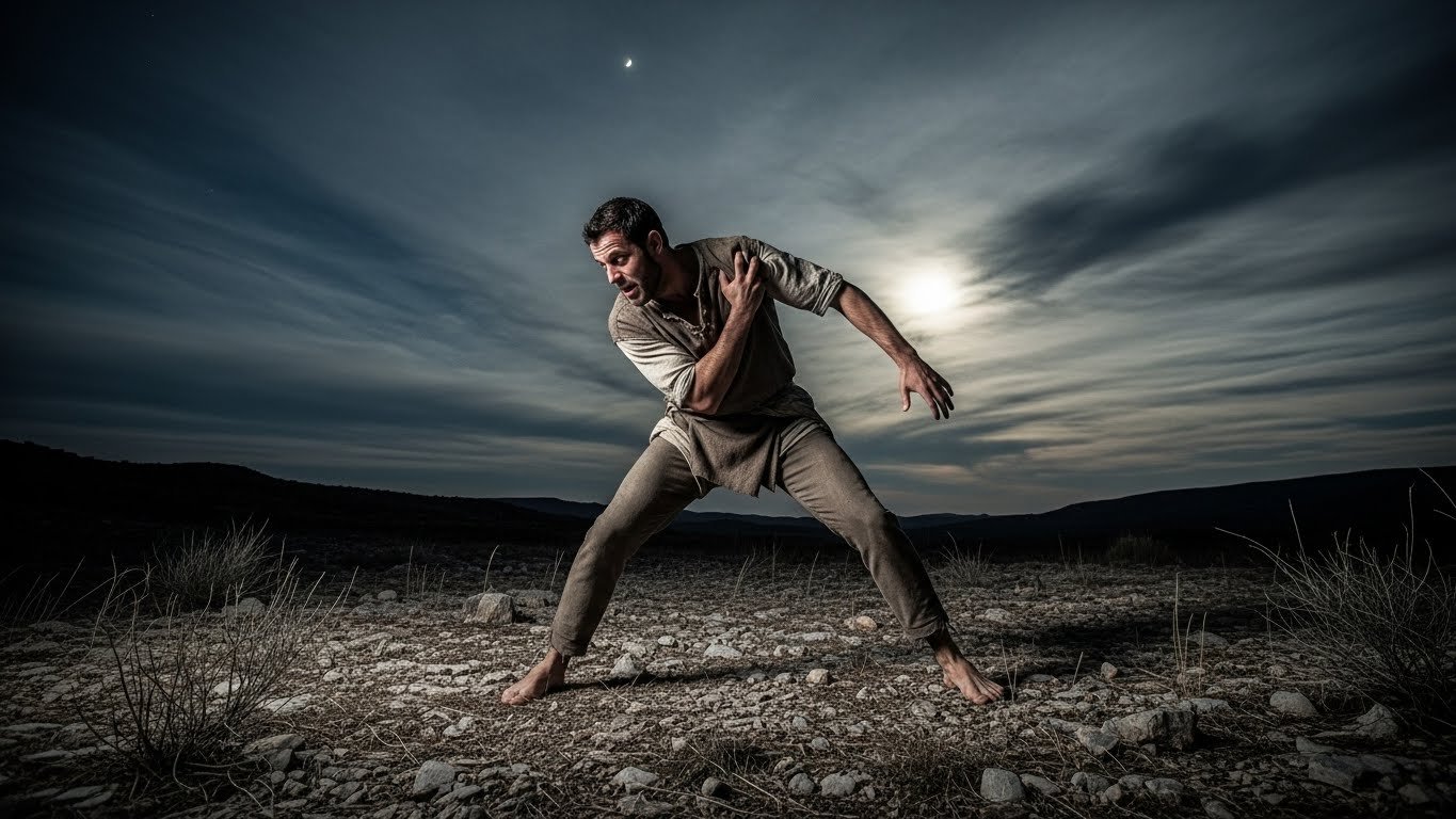 Mas a noite antes do encontro se torna o momento mais decisivo da vida de Jacó. Sozinho, ele luta com um homem até o amanhecer. Este não era um homem comum, mas o próprio Deus em forma humana. Jacó se recusa a soltá-Lo sem receber uma bênção. Durante a luta, sua coxa é deslocada, deixando-o manco para o resto da vida. Mas ele recebe algo muito maior: um novo nome. “Não te chamarás mais Jacó (enganador), mas Israel (aquele que luta com Deus), pois lutaste com Deus e com os homens e prevaleceste.”