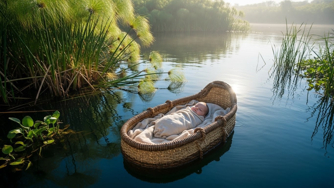 Em Êxodo 2, nasce Moisés. Sua mãe o esconde por três meses e depois o coloca em um cesto no rio Nilo. Providencialmente, a filha do Faraó o encontra e o adota, criando-o no palácio egípcio. Moisés recebe a melhor educação do Egito, mas seu coração permanece com seu povo.
