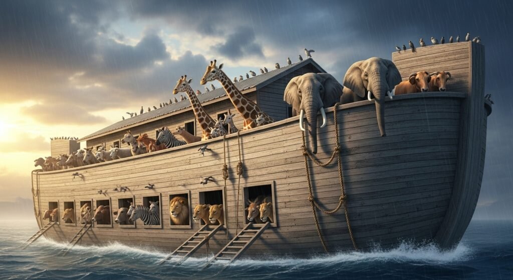 Detalhe importante: O dilúvio não terminou de uma hora para outra. Levou quase 1 ano completo desde o início até a saída total da arca.